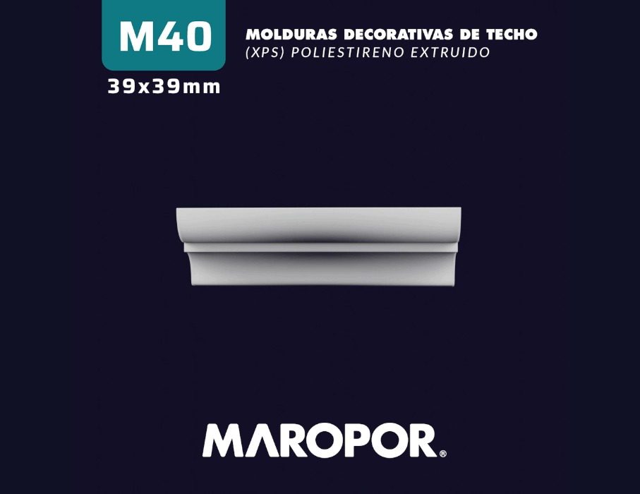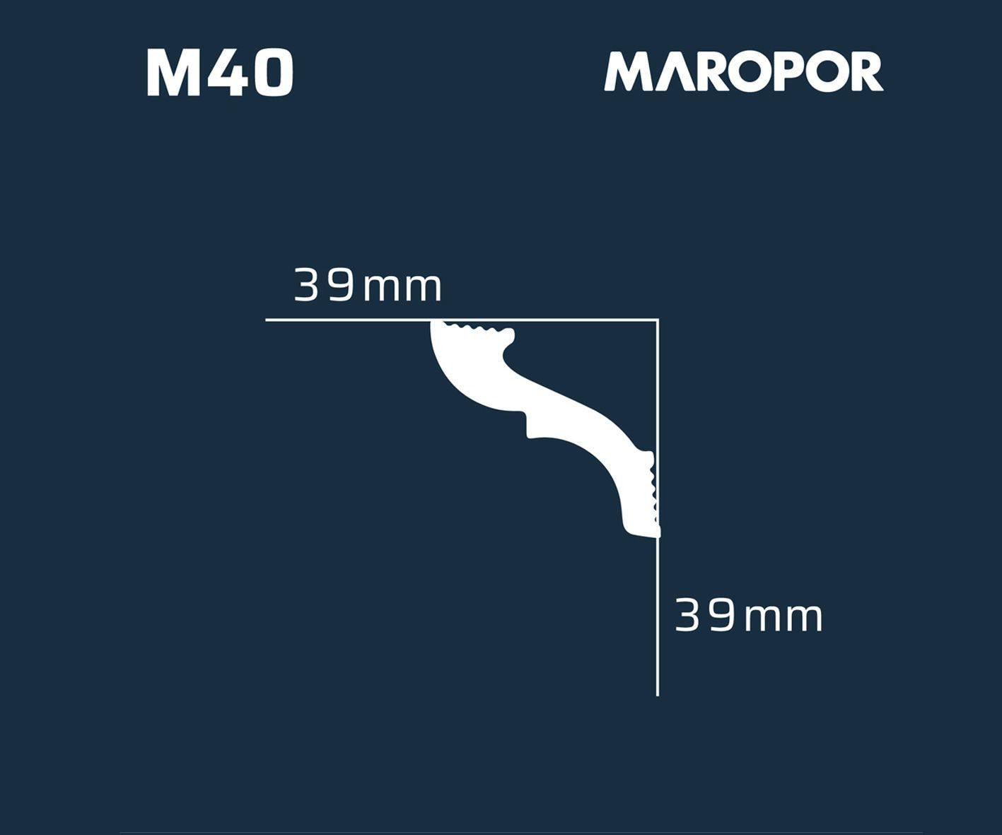 La moldura modelo M40 de Maropor combina un diseño clásico con líneas limpias y definidas, aportando un toque de distinción a cualquier espacio. Su perfil curvado, con un sutil reborde, crea un efecto visual que resalta la transición entre el techo y la pared, proporcionando una sensación de armonía y equilibrio. Ideal para quienes buscan un acabado elegante y atemporal, la M40 se adapta a diferentes estilos decorativos, desde lo tradicional hasta lo contemporáneo.