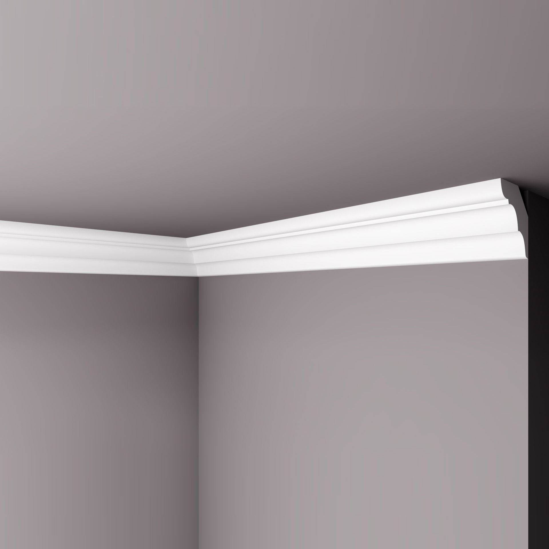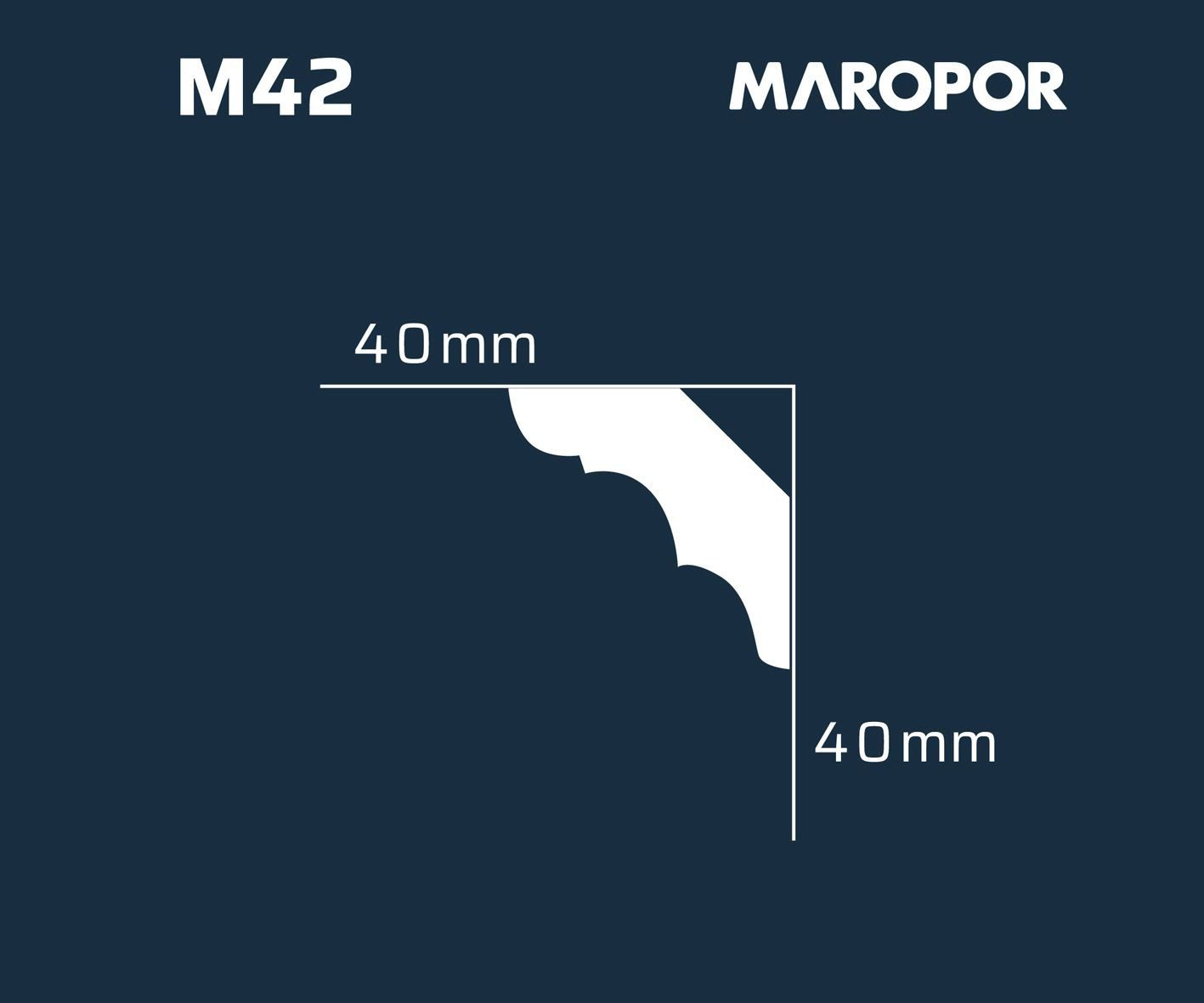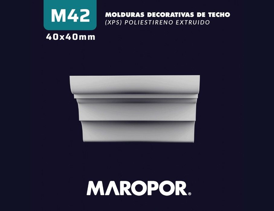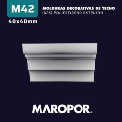 La moldura M42 se destaca por su perfil elegante y limpio, con líneas suaves y una forma sutilmente curva que aporta un toque de sofisticación y modernidad a cualquier espacio. Su diseño es ideal para aquellos que buscan una transición armoniosa entre el techo y la pared, agregando un detalle refinado sin sobrecargar la decoración.