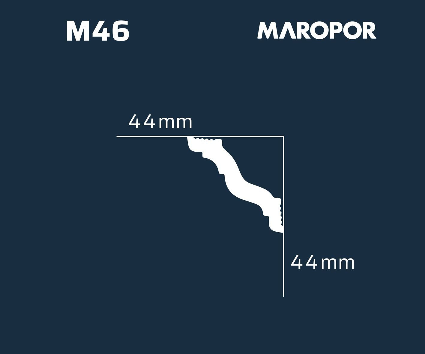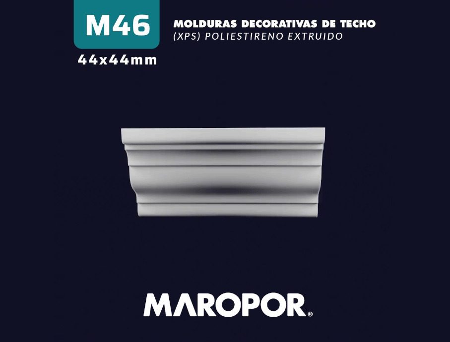 La moldura modelo M46 de Maropor es una elección sofisticada que combina múltiples líneas y detalles en su perfil, ofreciendo una estética rica y elegante. Sus delicadas curvas y bordes definidos crean un juego de sombras que realza la unión entre el techo y la pared, aportando un toque de distinción a cualquier ambiente. Ideal para interiores que buscan un acabado con personalidad, la M46 se adapta a estilos tanto clásicos como modernos, proporcionando una sensación de profundidad y lujo.
