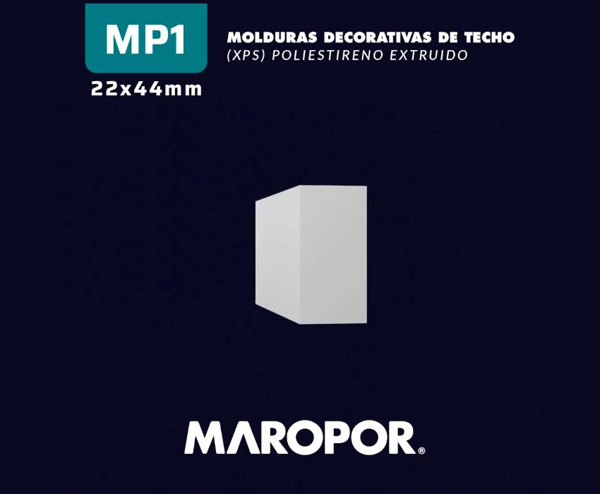 La moldura modelo MP1 de Maropor destaca por su formato recto de mayor tamaño, pensado para realzar la transición entre techo y pared con más carácter. Su diseño limpio se potencia en espacios amplios o con techos altos, logrando un efecto visual de mayor impacto sin perder la estética moderna y minimalista que caracteriza a esta línea. CARACTERISTICAS Alto: 44mm Profundidad: 22mm Largo: 2m Unidades por caja: 63 Metro lineales por caja: 126