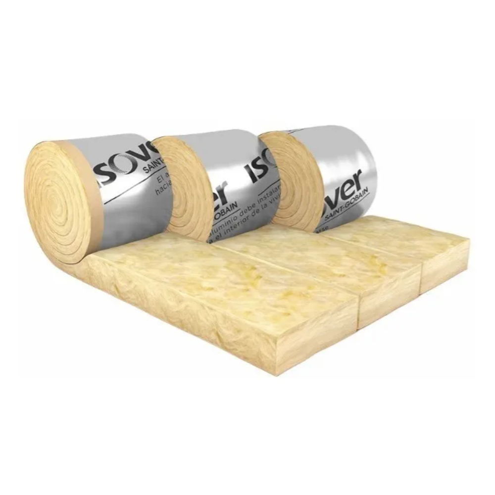 Fieltro de lana de vidrio ISOVER G3 hidrorepelente revestido en una de sus caras con un foil de aluminio que actúa como barrera de vapor, para ser instalado en muros y en cielorrasos de sistema en seco.