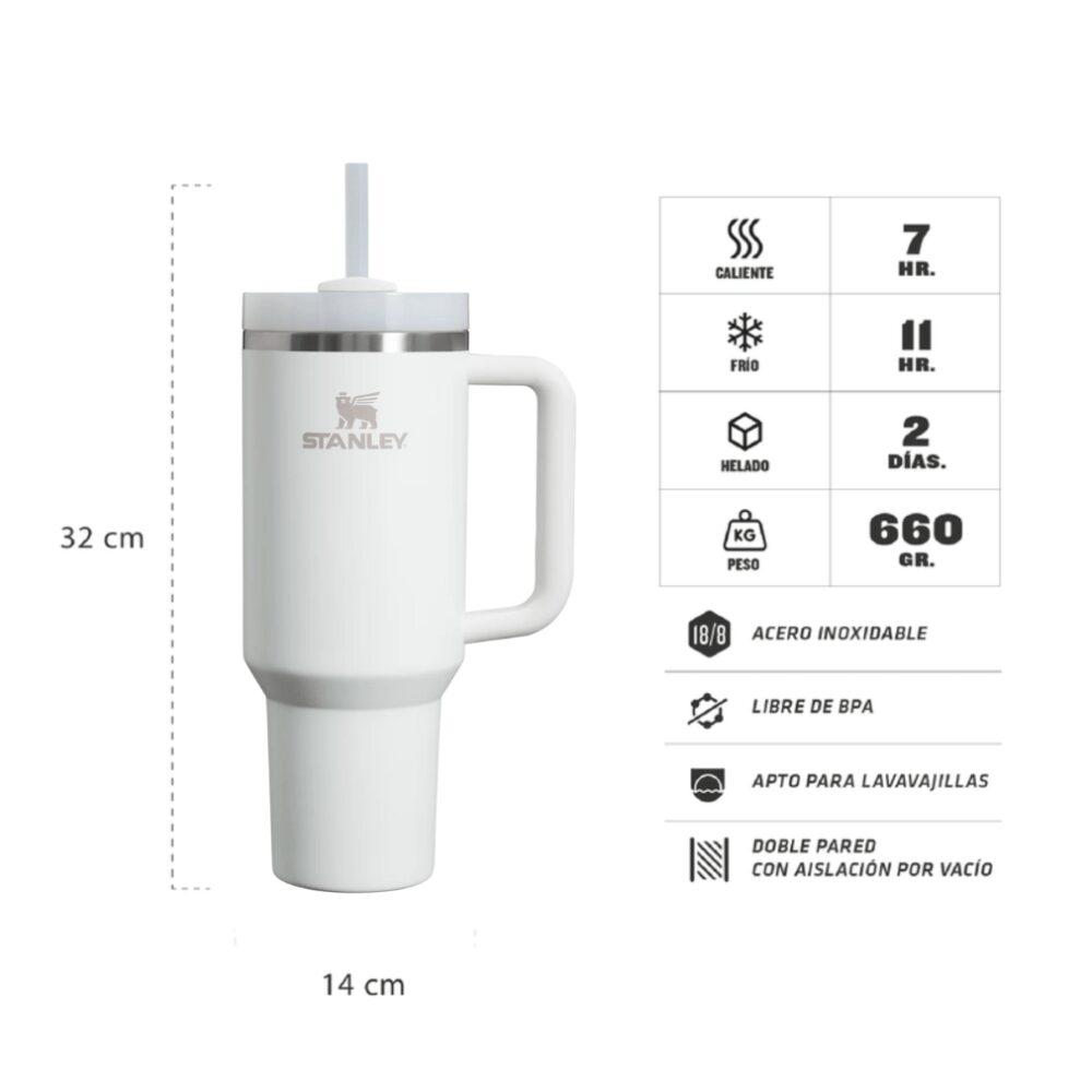 Construido con acero inoxidable, nuestro vaso Quencher ofrece la máxima hidratación con menos recargas. Al ir al trabajo, al entrenamiento o a las excursiones de un día, querrás tener este vaso a tu lado. Gracias al aislamiento al vacío de Stanley, tus bebidas se mantendrán heladas, hora tras hora. La tapa FlowState™ avanzada cuenta con una cubierta giratoria con tres posiciones: una abertura diseñada para resistir las salpicaduras mientras mantiene el sorbete en su lugar, una abertura para beber y una tapa de cobertura completa. El asa ergonómica incluye inserciones de agarre cómodo para transportarlo con facilidad, y la base angosta se adapta a casi cualquier portavasos de vehículo.